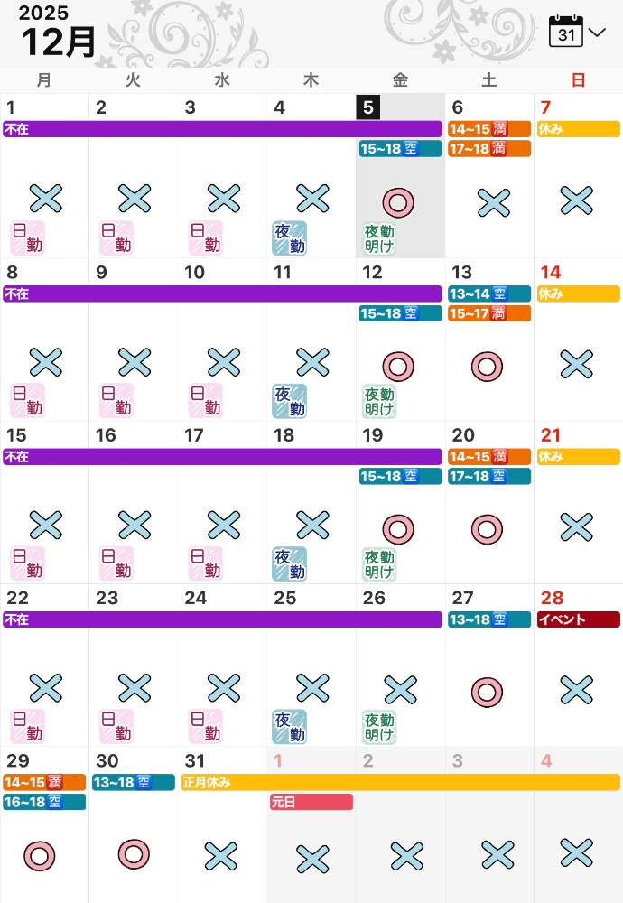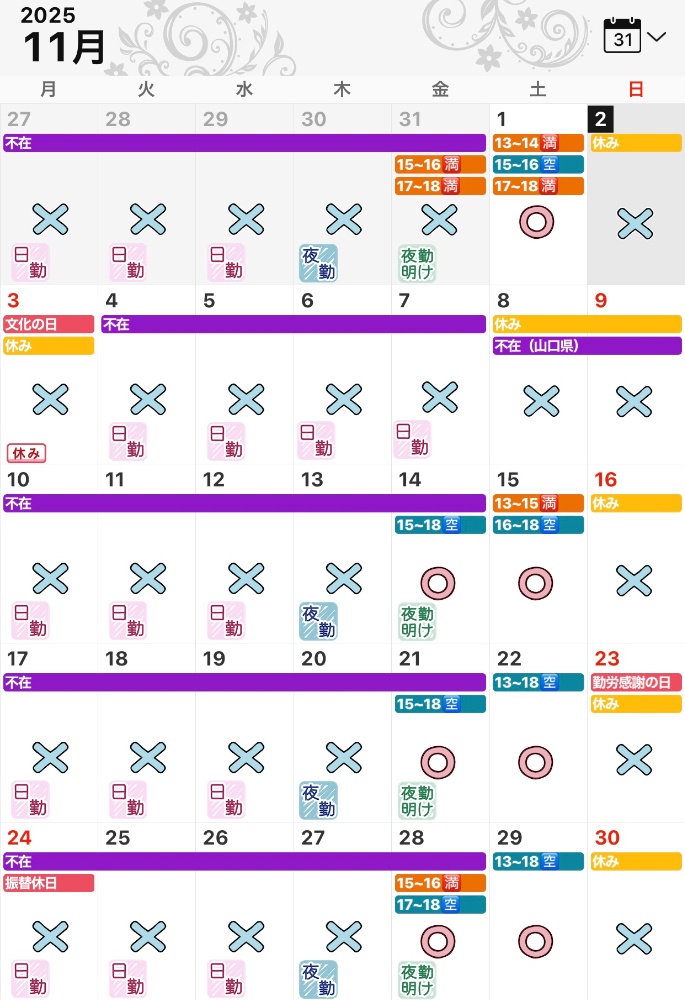 予約がない日は不在の可能性があります。